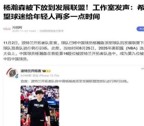更让球迷焦虑的是,11月2日、3 日开拓者对阵太阳、爵士的比赛,杨瀚森接连被下放到发展联盟附属球队“撕裂之城混音队”。
